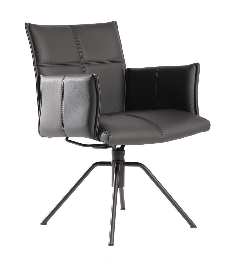 Diese Kombination ist einzigartig und verschafft Ihnen einen nie dagewesenen Sitzkomfort am Esstisch – aufrechtes Sitzen, bequemes Zurücklehnen, entspanntes Drehen und komfortables Aufstehen – vereint in einem Stuhl.