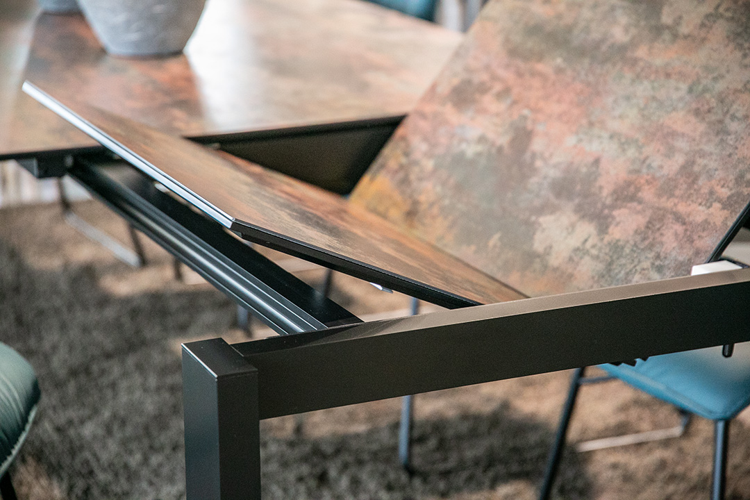 Keramik ist ein robustes, pflegeleichtes Material, das sich hervorragend als Tischplatte eignet. Es besteht hauptsächlich aus Ton, angereichert mit natürlichen mineralischen Rohstoffen wie Quarz, Kaolin und Feldspat. Typische kleine Farbabweichungen, Pigmentflecken oder leichte Unebenheiten sind materialbedingt, verleihen jeder Oberfläche ihren einzigartigen Charakter und stellen keinen Mangel dar. Porzellankeramik ist weitgehend kratzfest, lebensmittelecht, pflegeleicht und UV-beständig, sodass sie auch bei intensiver Nutzung ihre Form und Farbe behält.