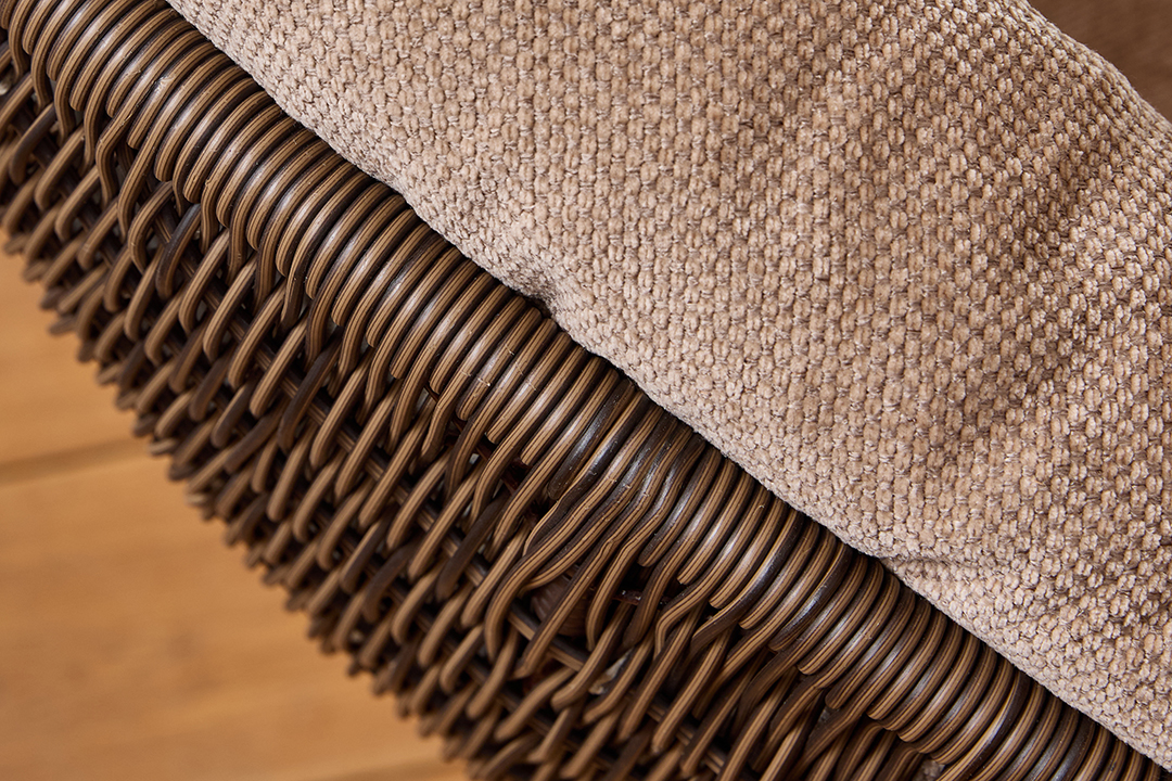 Amina® ist ein hochwertiges Kunstgeflecht aus Polyethylen (PE), das natürliche Optik mit moderner Technologie verbindet. Die durchgefärbte, verstärkte Faser ist besonders langlebig, reißfest, licht- und farbecht sowie äußerst widerstandsfähig gegen Witterung, Schmutz und Feuchtigkeit. Materialbedingte Veränderungen wie eine leichte Wellenbildung des Geflechts durch den täglichen Gebrauch sind normal und stellen keinen Qualitätsmangel dar.