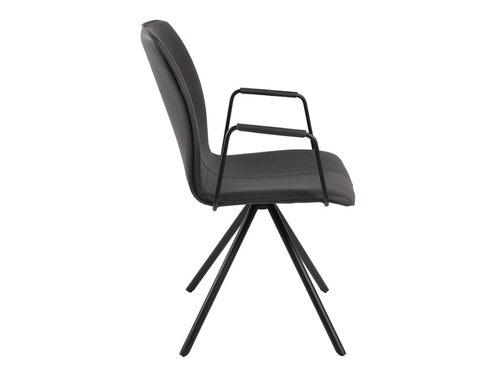 Die filigrane, offen gestaltete Armlehne verleiht dem Stuhl ein leichtes, modernes Design. Sie bietet angenehmen Halt, ohne die Sitzfreiheit einzuschränken.