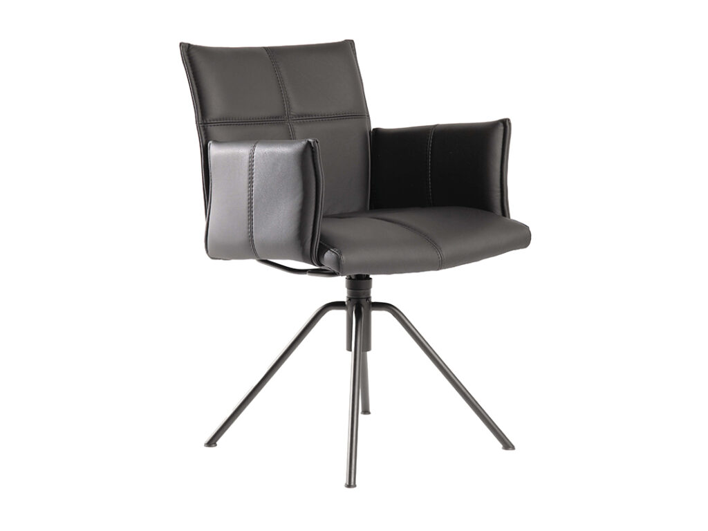 Sitz, Rücken und Armlehnen verfügen über eine moderne Kreuznaht. Optional gibt es die Kreuznaht auch mit Kontrastfaden in den Farben weiß, hellgrau anthrazit oder schwarz. Auf Wunsch kann HENRI auch ohne Ziernaht gefertigt werden.
