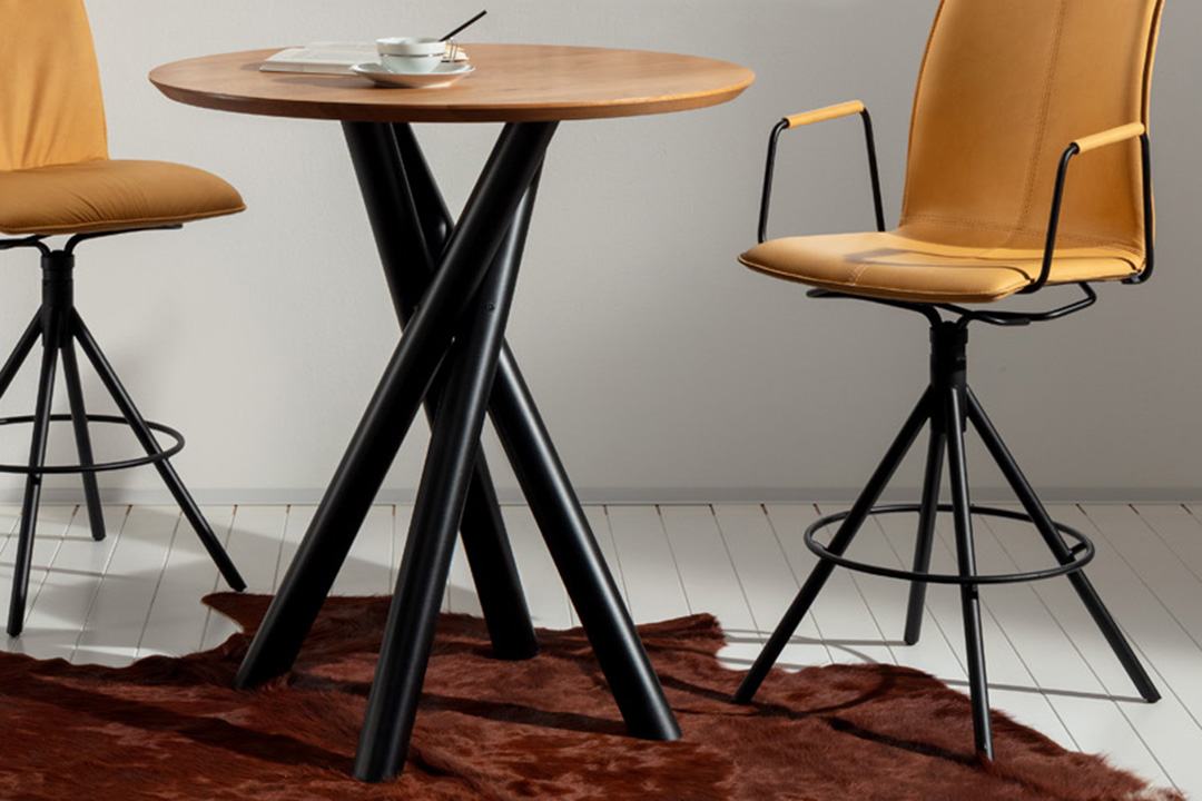 Mit einer Standardhöhe von 96 cm sowie optionalen Höhen von 86 oder 106 cm lässt sich BOGOTA flexibel einsetzen – ob als klassischer Bartisch oder als eleganter Stehtisch. So verbindet BOGOTA Funktionalität mit einem starken Designstatement.