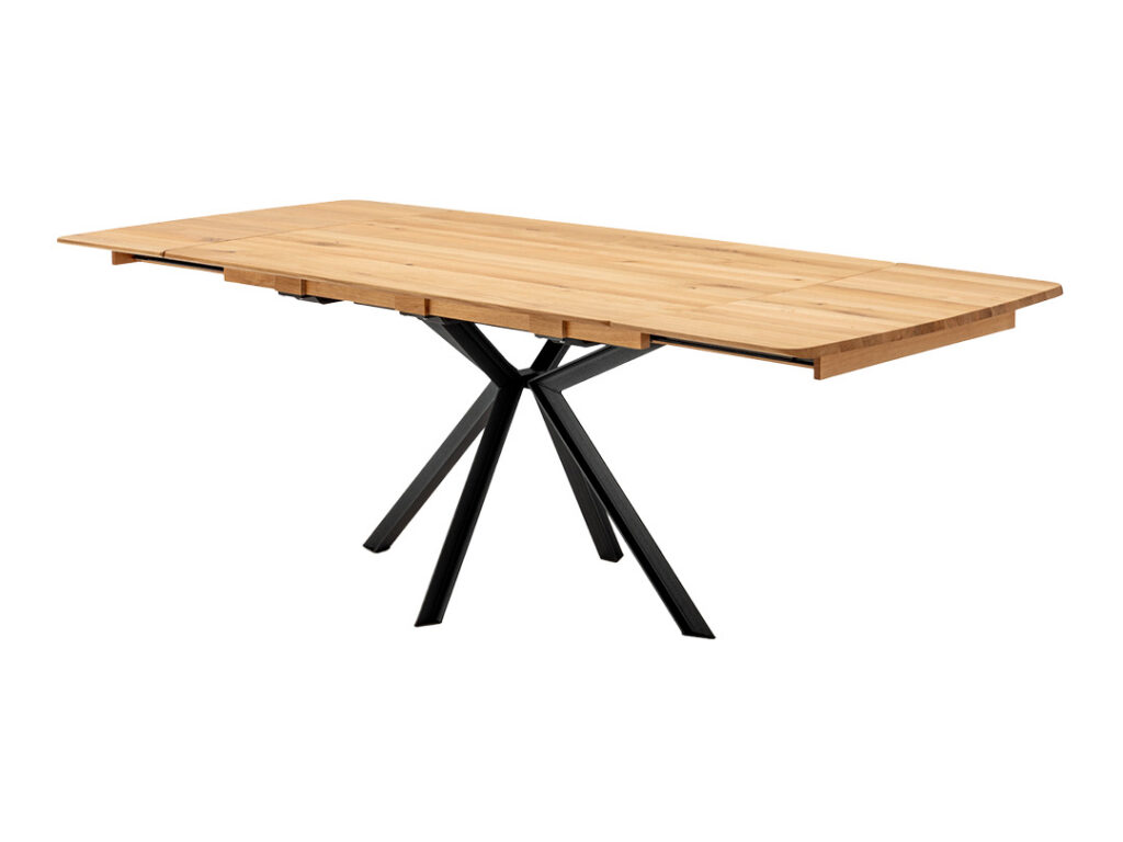 Für zusätzliche Flexibilität steht eine komfortable Erweiterungsfunktion zur Verfügung: wahlweise ein 80-cm-Synchronauszug für Tischlängen von 160 bis 240 cm oder ein praktischer Kopfauszug. So passt sich WIEN mühelos Ihren Platzbedürfnissen an und wird zu einem langlebigen, charakterstarken Mittelpunkt Ihres Wohnraums.