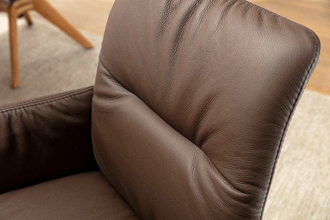 Die weich gepolsterte Rückenlehne mit markanter Quernaht verleiht dem Modell Arco Iris leger & Daniele einen legeren Look.