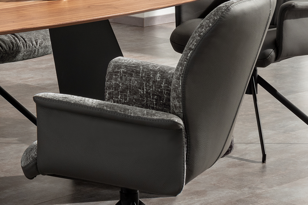 Optional ist BENNO mit der patentierten Moover-Funktion für aktives Sitzen und entspanntes Zurücklehnen sowie mit 360°-Drehfunktion erhältlich – perfekt für anspruchsvolle Wohn- und Essbereiche.