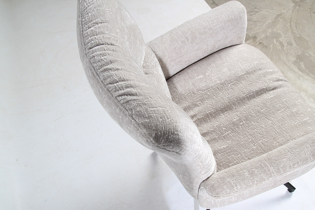 Durch die filigran geschwungene Flügelarmlehne des Sessels entsteht eine Elganz, welche durch die feinen Linien der Sitzschale perfekt unterstützt wird.
