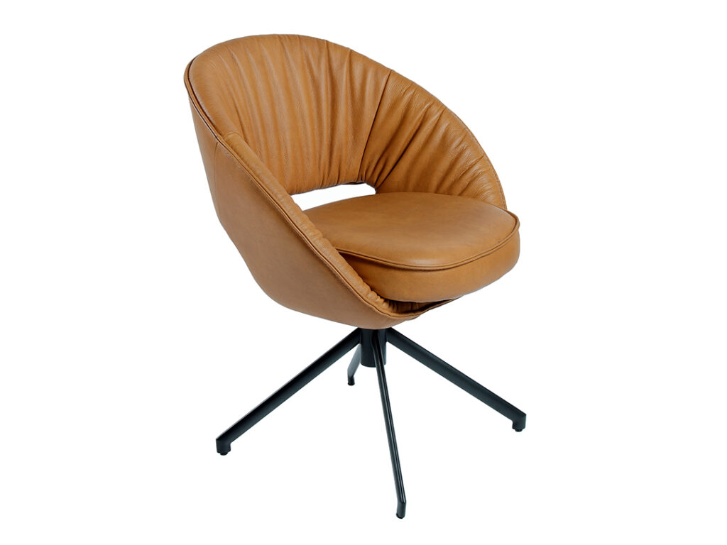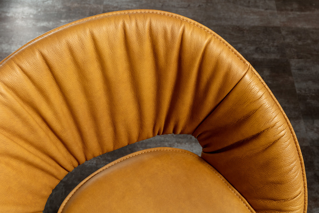 Bei legerer Polsterung ist die Innenseite der Rückenlehne leger in Falten gelegt und verleiht dem Sessel eine entspannte, wohnliche Note.