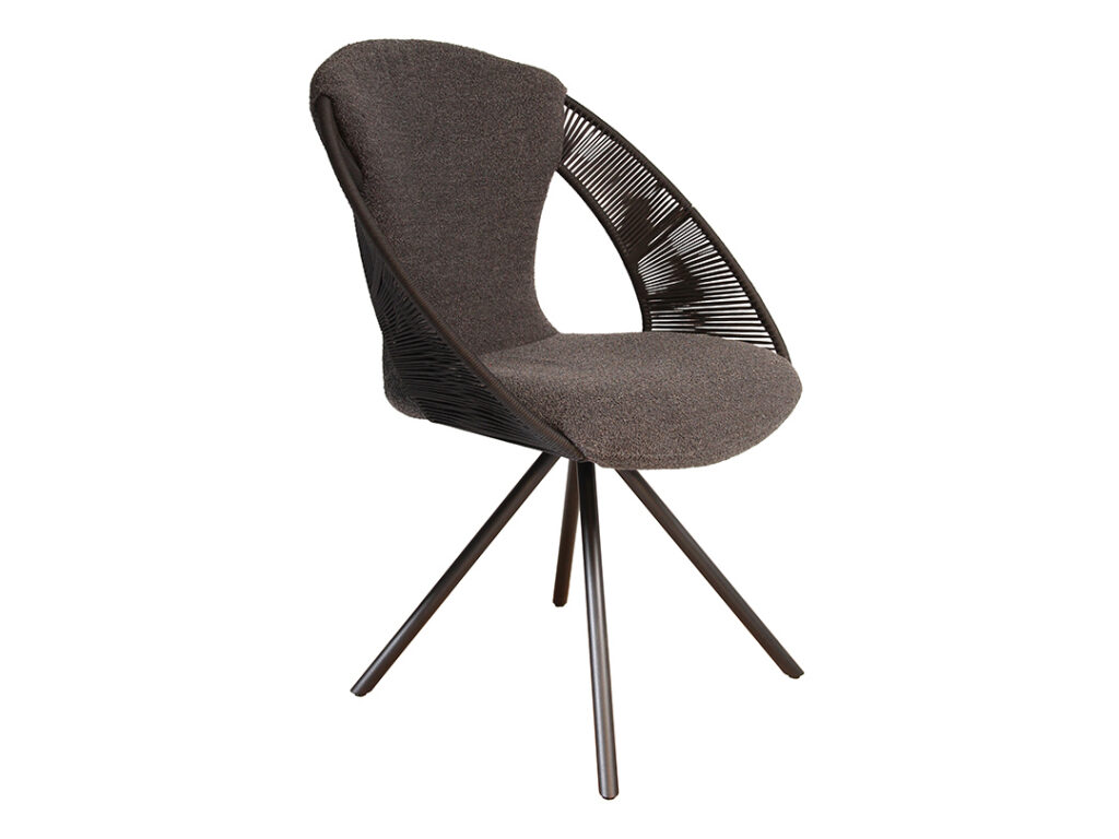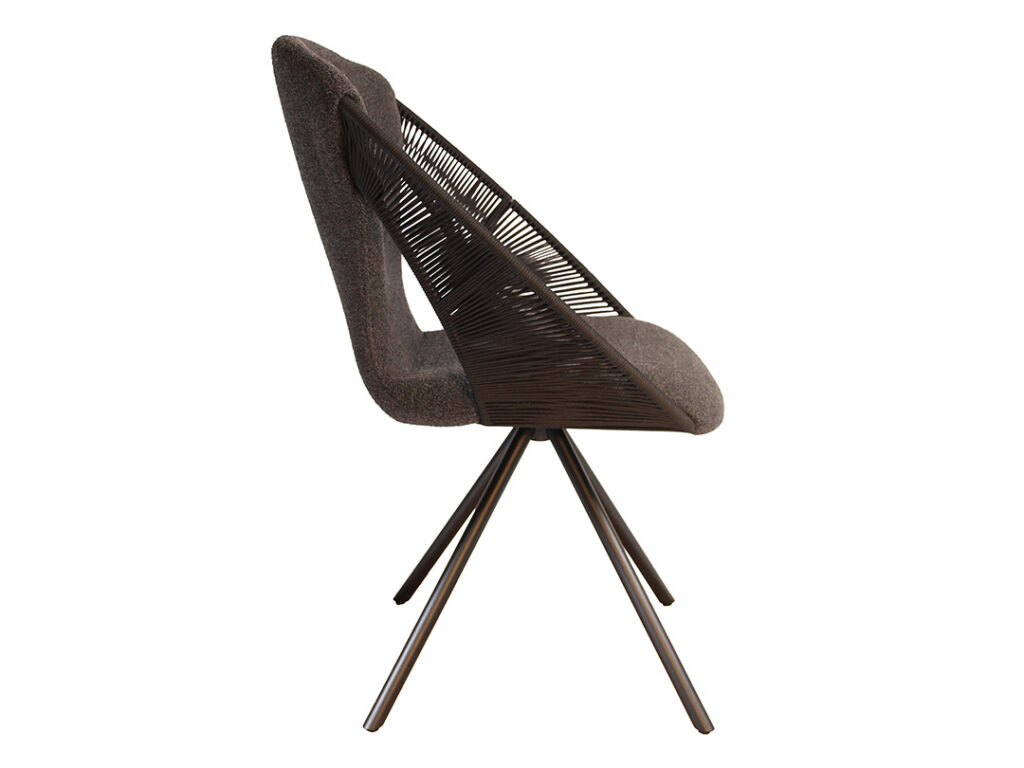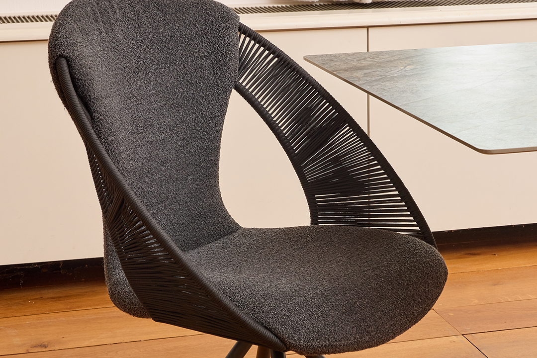 KIRA verbindet filigrane Optik mit stabiler Konstruktion und überzeugt durch ein modernes, leichtes Erscheinungsbild. Die Sitzschale wird durch ein feines Schnurelement unterbrochen, das dem Sessel Transparenz und eine besondere Leichtigkeit verleiht.