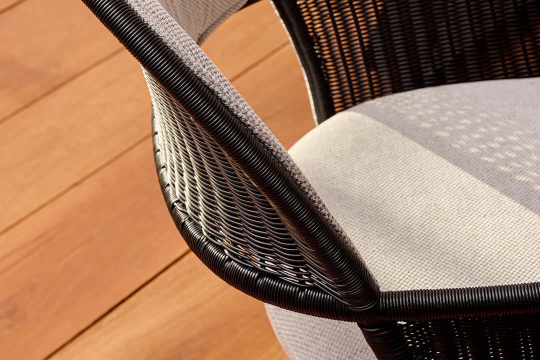 NORA kombiniert leichte, luftige Anmutung mit moderner Handwerkskunst und schafft so ein Sitzmöbel, das Natürlichkeit und Komfort harmonisch verbindet. Das fein gearbeitete Geflecht – wahlweise Kunstgeflecht Amina oder Naturgeflecht Boondoot – verleiht dem Stuhl Transparenz und eine warme, wohnliche Ausstrahlung.